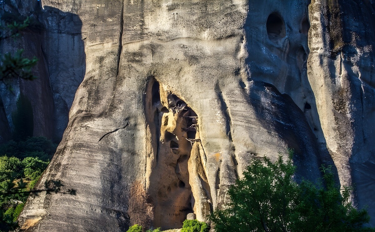To get to it, you have to overcome eighty steep steps. The remains of the old wooden staircase (originally it consisted of 62 steps), with the help of which skitniks ascended to Meteora, can still be seen.