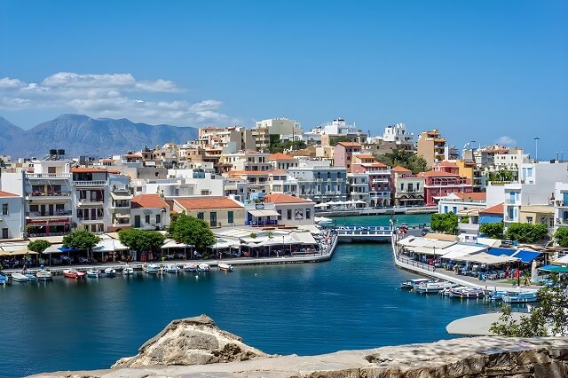 Along the northern coast of eastern Crete, about 65 kilometers east of Heraklion, is Agios Nikolaos – one of Crete’s most popular modern resorts. It’s situated on hilly terrain above Mirabello Bay next to the luxurious beach hotels and villas of Elounda.