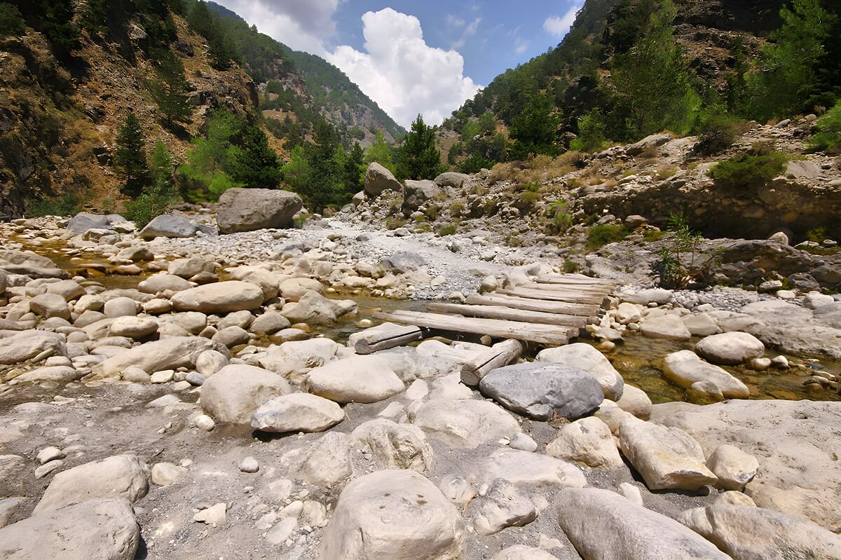 Walking through Samaria Gorge, the terrain is rocky but not dangerous